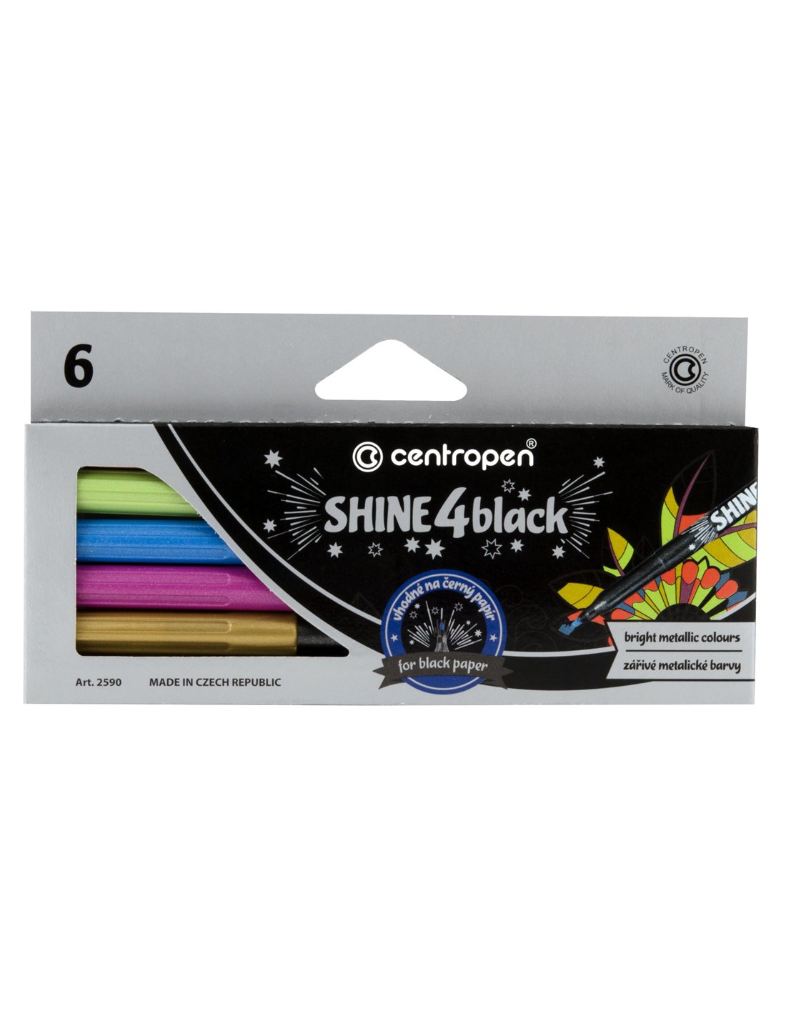 Markere slim cu cerneala permanenta, in culori metalice. Ideale pentru detalii fine. Se pot utiliza pe hartie inchisa la culoare. Zona de prindere ergonomica. Varf rotund, 2.5 mm. Latimea liniei 1mm. Set creativ cu 6 culori.