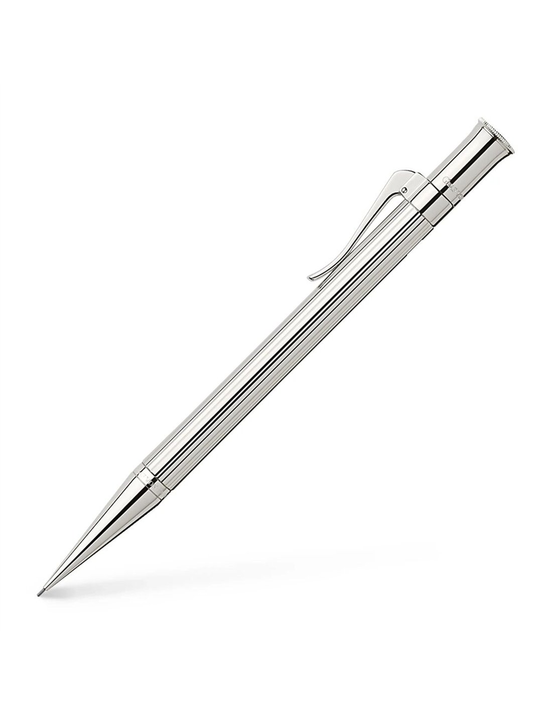Creionul mecanic Graf von Faber‑Castell Classic Platinum este un instrument de scris de lux, apreciat pentru designul sau elegant si materialele de inalta calitate. Un obiect de scris deosebit, ideal pentru cei care apreciaza metale pretioase si design clasic. Balansat intre eleganta si functionalitate, cu materiale premium si o constructie robusta — perfect pentru uz profesional sau cadouri rafinate. Corp si capac placate cu platina, cu un design striat fin (fluting), tipic seriei Classic. Suprafata durabila, rezistenta la oxidare, nu se pateaza. Clips solid cu arc pentru prindere usoara. Mecanism: twist‑cap – rotire a capului pentru avansare mina. Creionul utilizeaza mina de 0,7 mm, de tip B, rezistenta la rupere, ideala pentru scrierea zilnica si pentru detalii fine. La capatul creionului se afla un capac care poate fi indepartat pentru a accesa radiera alba inlocuibila. Creionul include un compartiment pentru depozitarea minelor de schimb. Dimensiuni: lungime de 140 mm si diametru de 9 mm, cu o greutate de 40 g, oferind o senzatie de echilibru si confort in utilizare.
